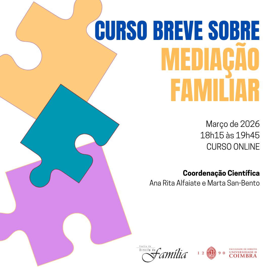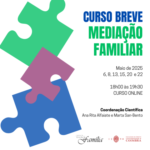 4.º Curso Breve sobre Mediação Familiar![]() Data: Terça, Maio 6, 2025 a Quinta, Maio 22, 2025 Coordenação: Ana Rita Alfaiate Marta San-Bento |