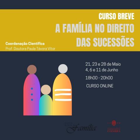 Curso Breve: A Família no Direito das Sucessões Data: Terça, Maio 21, 2024 a Terça, Junho 11, 2024Coordenação: Paula Távora Vítor